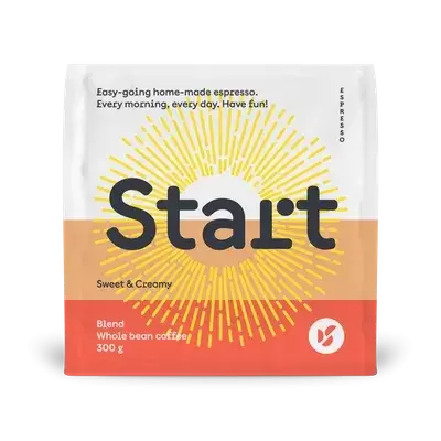 Zoete en romige espresso. Start is onze basismelange gebrand voor volautomatische espressomachines. Iedereen kan deze koffie goed zetten.