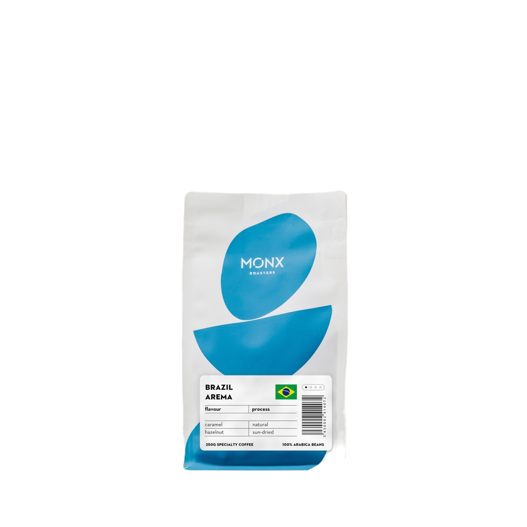 De Brazil Arema 250g van Monx is een single origin specialty Arabica-koffie afkomstig van Fazenda Arema in de Braziliaanse Cerrado Mineiro-regio. Gemaakt van de Red Catuaï-variëteit, biedt deze koffie een zachte karamel- en hazelnootsmaak, aangevuld met subtiele tonen van melkchocolade en een volle body. Verkrijgbaar als hele bonen of gemalen voor diverse zetmethodes.