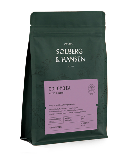 Dit is 250 gr Solberg Hansen Patio Bonito, een heerlijke koffie met zure tonen.