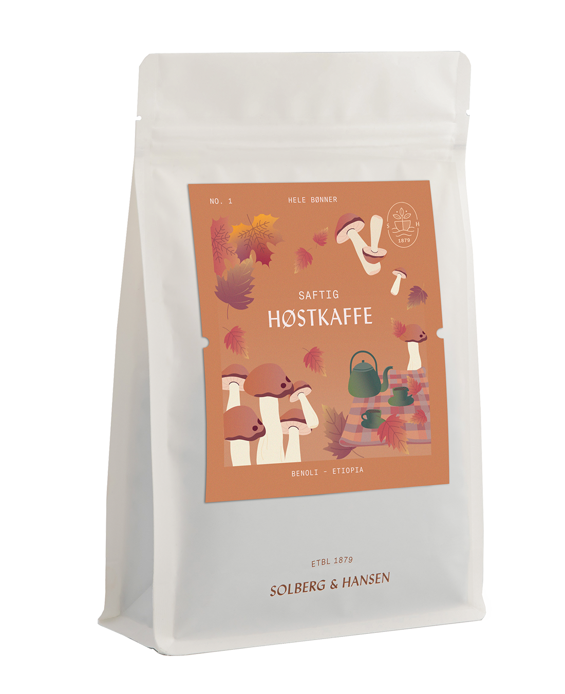 Dit is 250 gr Solberg Hansen Sappige herfstkoffie, een heerlijke koffie met zure tonen.