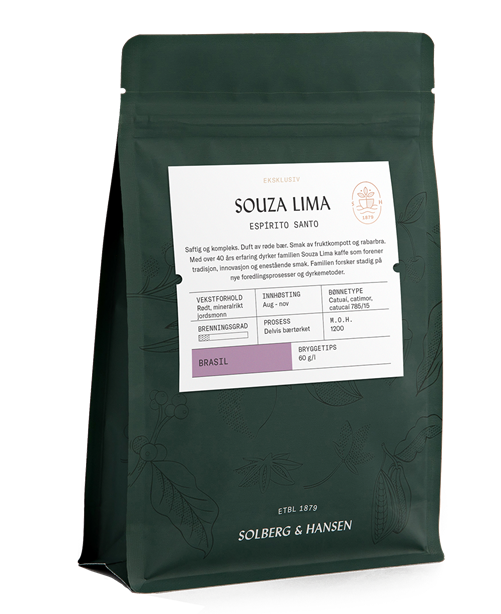 Dit is 250 gr Solberg Hansen Souza Lima, een heerlijke koffie met zure tonen.